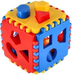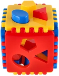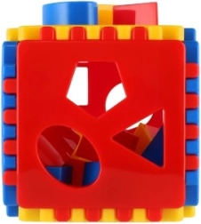 Acest cub colorat de sortare este o jucărie didactică ideală pentru cei mici. Copiii introduc formele în orificiile potrivite și își antrenează coordonarea mână–ochi și gândirea logică. Datorită plasticului solid și non-toxic, cubul este rezistent și sigur.