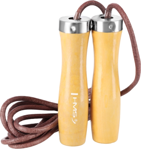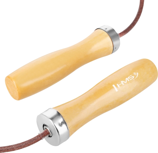 Coarda de sărit HMS este un instrument fiabil pentru cardio, arderea caloriilor și îmbunătățirea coordonării. Cablu din piele (270 cm) este rezistent și asigură un balans stabil, în timp ce rulmenții cu bile din mânere oferă o rotație lină și rapidă, fără blocaje. Mânerele din lemn, ergonomice, se așază bine în palmă și reduc oboseala în timpul sesiunilor mai lungi.