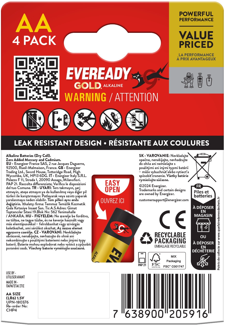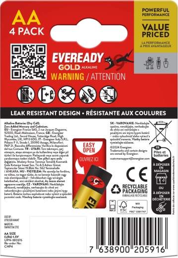 Căutați o sursă de alimentare universală pentru electronicele din casă? ENERGIZER Eveready Gold, mărimea AA, sunt baterii alcaline proiectate pentru funcționarea fiabilă a dispozitivelor cu consum redus până la mediu. Oferă energie de lungă durată și autodescărcare redusă față de alternativele zinc-carbon.