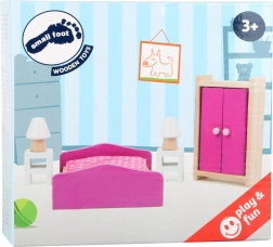 Acest set de dormitor pentru căsuța de păpuși, realizat cu atenție la detalii, oferă un finisaj din lemn de calitate, o armonie cromatică delicată în roz și alb și dimensiuni gândite pentru un joc confortabil. Include un pat cu pilotă, un dulap, noptiere și veioze – toate la scară pentru păpuși de până la 12 cm. Lemnul masiv durabil asigură o durată de viață lungă și distracție sigură pentru copiii de la 3 ani.