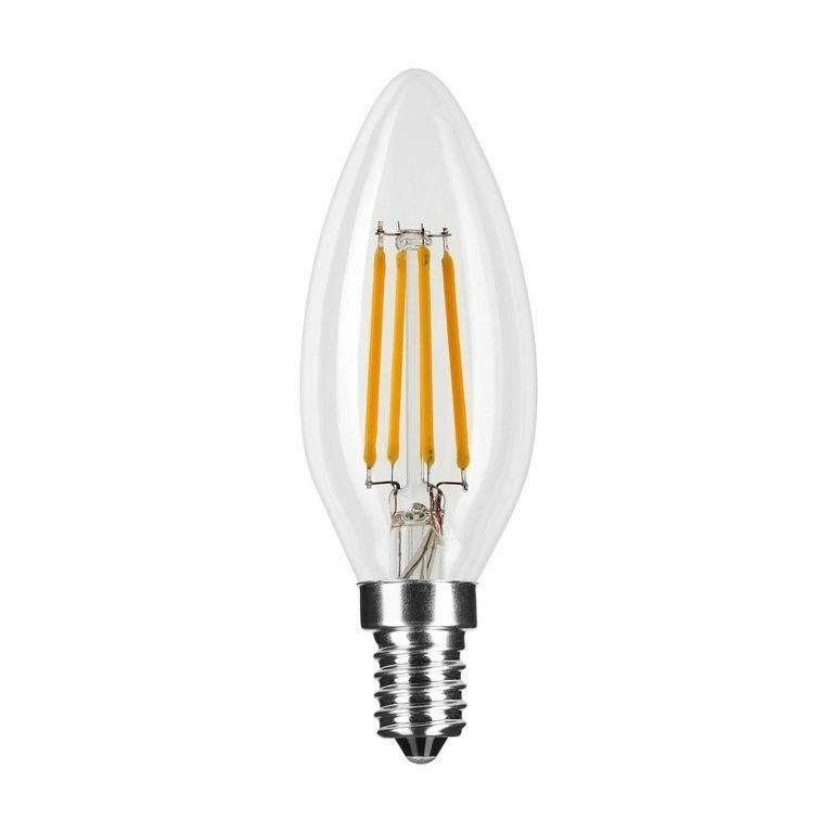 Bec LED elegant în formă de lumânare, cu soclu E14 și putere de 4 W, oferă 470 lm luminoși de lumină alb cald 2700 K. Datorită tehnologiei filament luminează la 360 °, are o durată de viață lungă de 35.000 h și o eficiență excelentă pentru iluminat economic și stilat.