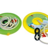 Pachetul include șezutul confortabil, frânghia rezistentă (cca 175 cm) și elementul de prindere – montajul este rapid și ușor. Înălțimea recomandată pentru agățarea șezutului este de 35–59 cm deasupra solului. Produsul este realizat din plastic ușor și durabil, respectă CE și EN 71 și este destinat copiilor de la 3 ani. Utilizați întotdeauna sub supravegherea unui adult.