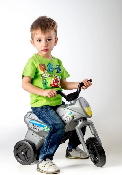 Bicicleta fără pedale Enduro Yupee în varianta Poliție aduce copiilor bucuria mișcării și primele plimbări în siguranță. Datorită celor trei roți este extrem de stabilă, realizată din plastic de calitate și potrivită atât pentru interior, cât și pentru exterior. Susține echilibrul, coordonarea și dezvoltarea naturală a motricității. Construcție stabilă cu 3 roți, ușoară și rezistentă, capacitate de încărcare până la 25 kg, înălțime confortabilă a șeii.