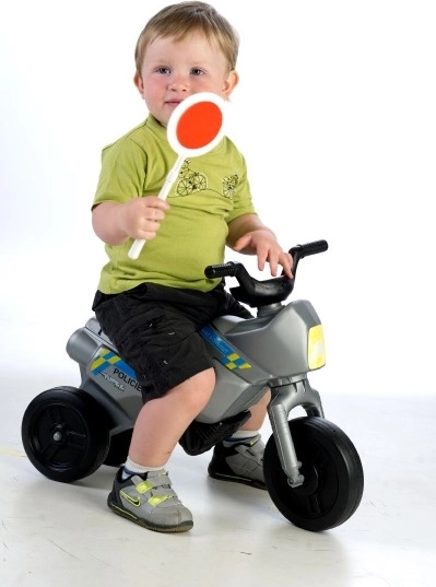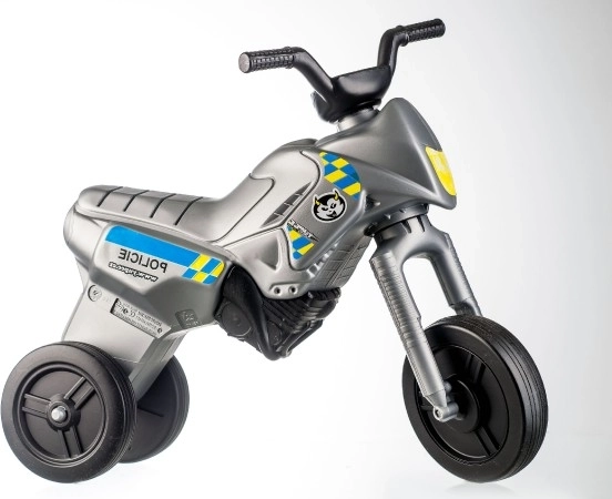 Descoperiți versiunea de poliție a îndrăgitei biciclete fără pedale Enduro Yupee, cu care copiii țin pasul cu părinții și se bucură de multă distracție. Construcția cu trei roți asigură stabilitate excelentă și siguranță, în timp ce plasticul de calitate rezistă utilizării obișnuite atât acasă, cât și în grădină. Bicicleta fără pedale susține dezvoltarea echilibrului, coordonării și atenției.