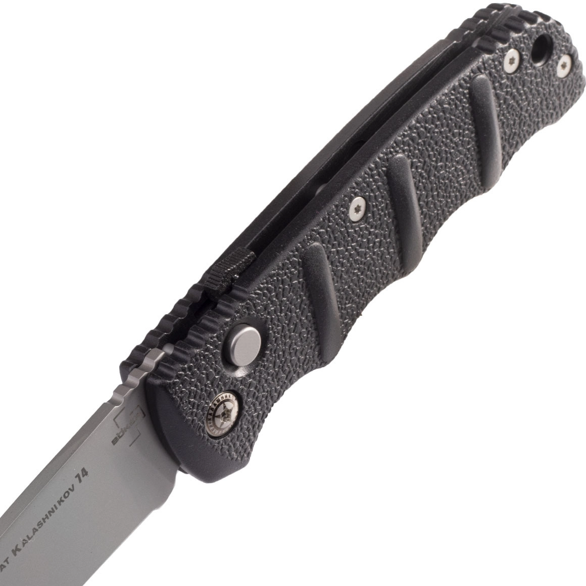 Automatul popular din seria inspirată de KALASHNIKOV se numără de mult timp printre cele mai căutate modele ale mărcii BÖKER PLUS. Lama din oțel D2 se deschide rapid și fiabil prin apăsarea butonului lateral, iar în poziția deschisă este blocată de siguranța Button Lock. Siguranța glisantă suplimentară previne atât deschiderea, cât și închiderea accidentală, astfel încât cuțitul este sigur la purtat în buzunar și în timpul lucrului.