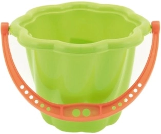 Mânerul confortabil, cu orificii, se potrivește bine în mâna copilului și asigură o prindere sigură la transportul apei și nisipului.