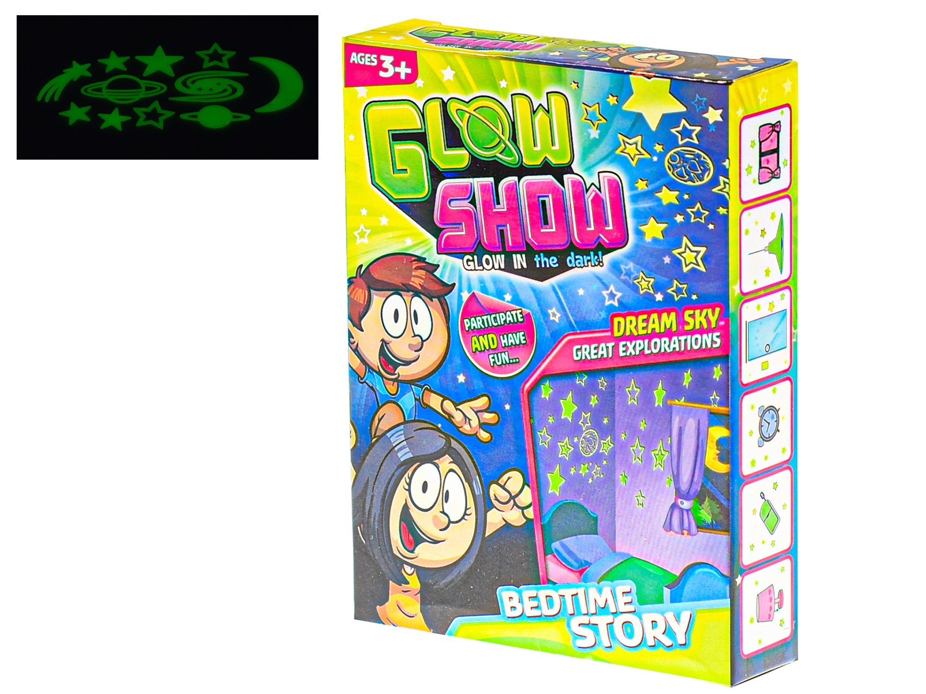 După expunerea la lumină pe timpul zilei, steluțele strălucesc în întuneric și creează o atmosferă plăcută pentru copiii de la 3 ani.