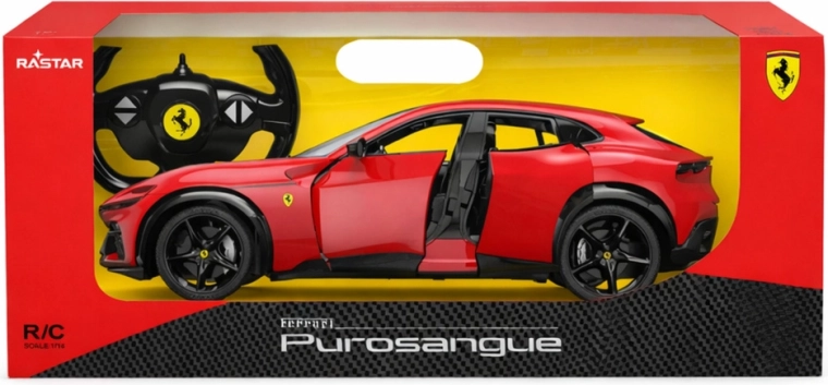 Mașina RC elegantă FERRARI Purosangue la scară 1:14 oferă un aspect realist, control 2,4 GHz fără interferențe și faruri și stopuri funcționale. Datorită suspensiei independente, ușilor deschise manual și detaliilor realizate cu precizie, plăcerea condusului este garantată atât pentru copii, cât și pentru adulți.