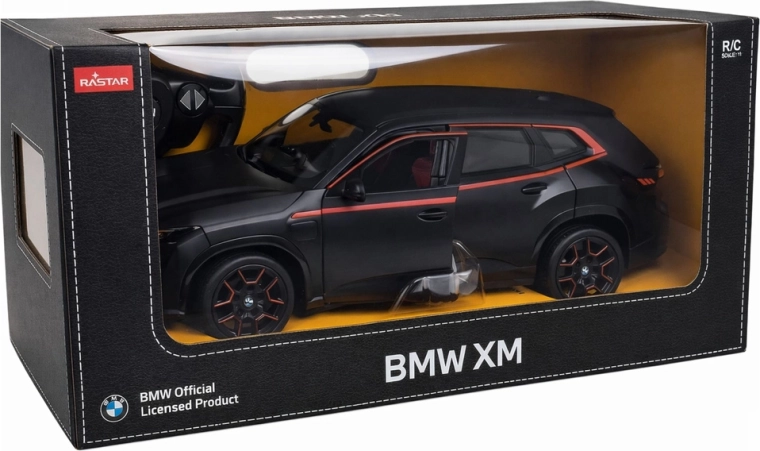 Model licențiat BMW XM la scară 1:14 de la RASTAR oferă design realist, deplasare în toate direcțiile și control fiabil pe 2,4 GHz. Varianta sport neagră cu accente roșii, faruri și stopuri funcționale, uși care se deschid și anvelope din cauciuc garantează distracție pentru copii și adulți.