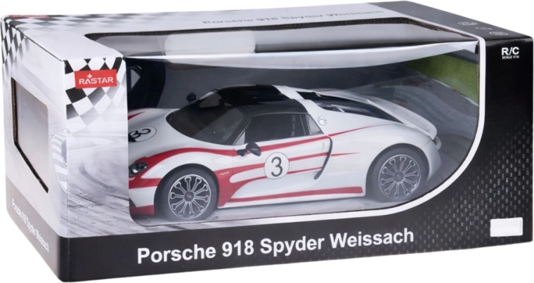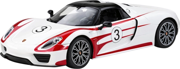 Acest model licențiat Porsche 918 Spyder Weissach în culoare albă, cu dungi roșii de curse, reproduce fidel supercarul legendar – de la caroseria aerodinamică la cockpitul finisat în detaliu. Plasticul de calitate și componentele mecanice solide asigură durabilitate și o viață lungă.