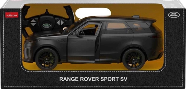 Model licențiat RANGE ROVER SPORT SV de la RASTAR la scara 1:14 oferă un aspect realist, finisaj negru mat și control lin pe frecvența 2,4 GHz. Datorită anvelopelor din cauciuc, farurilor LED și deplasării în toate direcțiile, asigură distracție atât în interior, cât și în exterior.