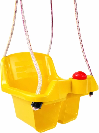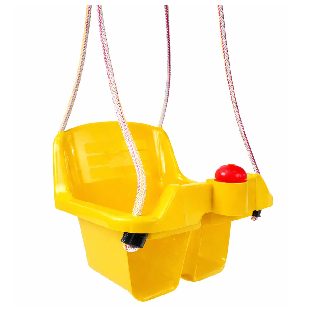 Acest leagăn galben tip găleată va încânta orice toddler. Șezutul adânc cu spătar înalt și blocare frontală mențin copilul în poziția corectă, astfel încât se poate legăna în siguranță atât acasă, cât și afară. Frânghiile robuste și plasticul durabil, cu viață lungă, rezistă utilizării zilnice.