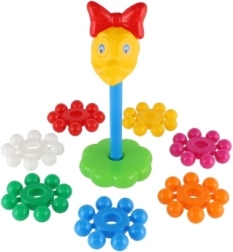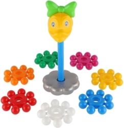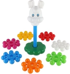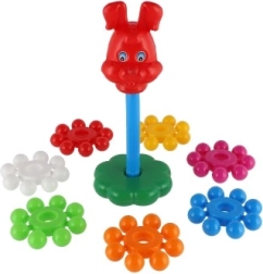 Inelele late și colorate se prind ușor de către copii și se introduc simplu pe tija centrală. Jocul susține precizia mișcărilor și antrenează coordonarea mână–ochi încă de la primii pași.