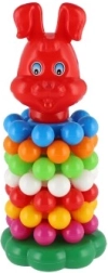 Această piramidă jucăușă din plastic, cu inele, este prima jucărie didactică ideală pentru cei mici. Copiii prind ușor inelele și le stivuiesc pe tijă, exersând în mod natural motricitatea fină, abilitățile de coordonare și diferențierea culorilor și mărimilor. Datorită înălțimii de 26 cm, turnul este stabil, bine vizibil și îi invită la încercări repetate.