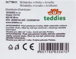 Această jucărie este realizată din plastic ușor și durabil, cu margini netede, și este disponibilă în 3 variante, cu forme diferite de inele și motive amuzante cu animale în vârf. Ambalajul practic, în plasă, facilitează depozitarea și transportul.