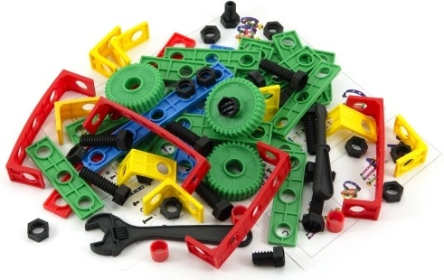 Descoperă lumea creativă a construcțiilor cu setul de construcție Variant micul tehnician pentru copii de la 3 ani. Setul oferă 183 de piese din plastic rezistent în culori vii – șuruburi, cârlige, rotițe și cuburi – pentru a construi vehicule, utilaje și avioane. Susține motricitatea fină, gândirea logică și răbdarea, fiind în același timp sigur și non-toxic pentru mâinile copiilor.