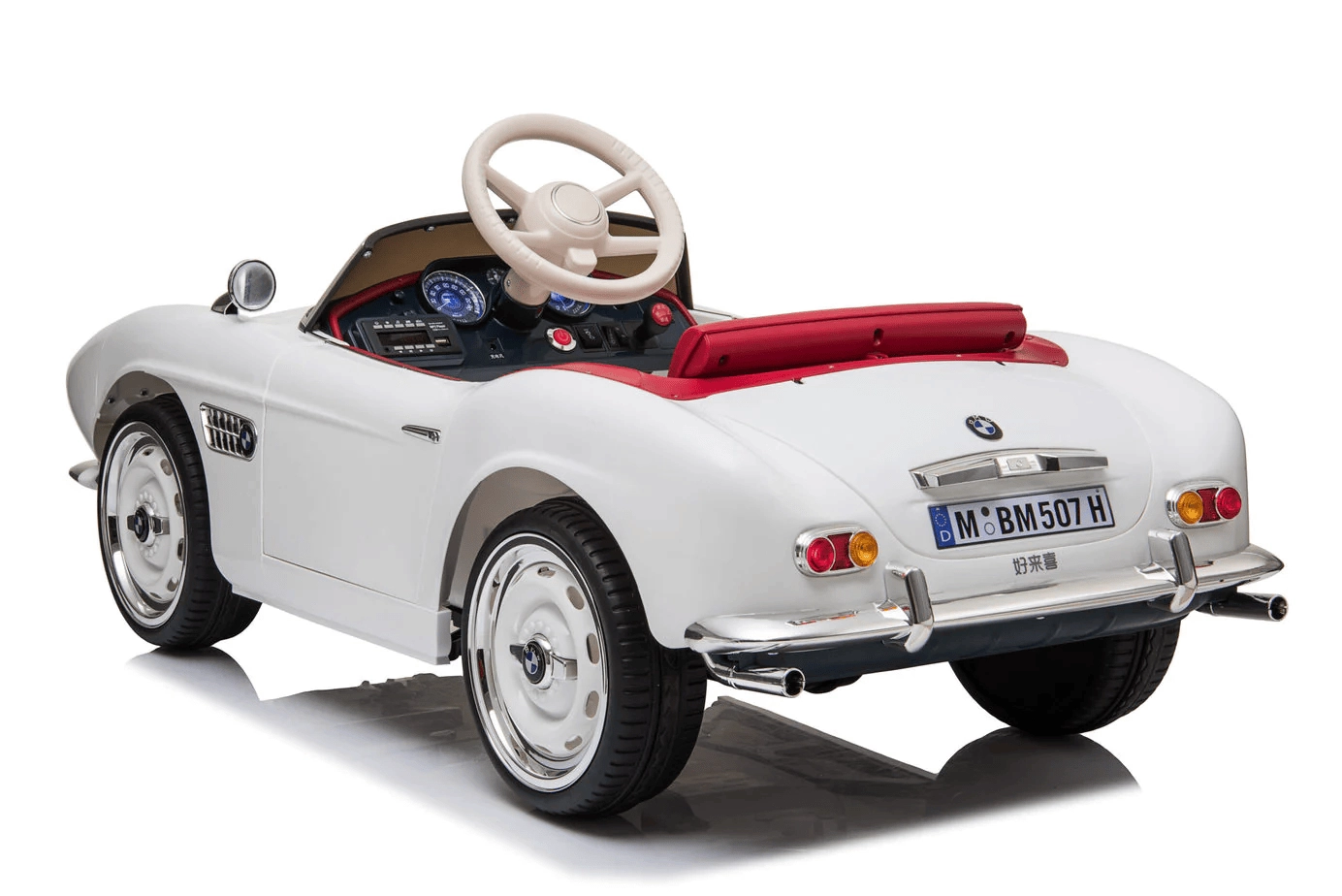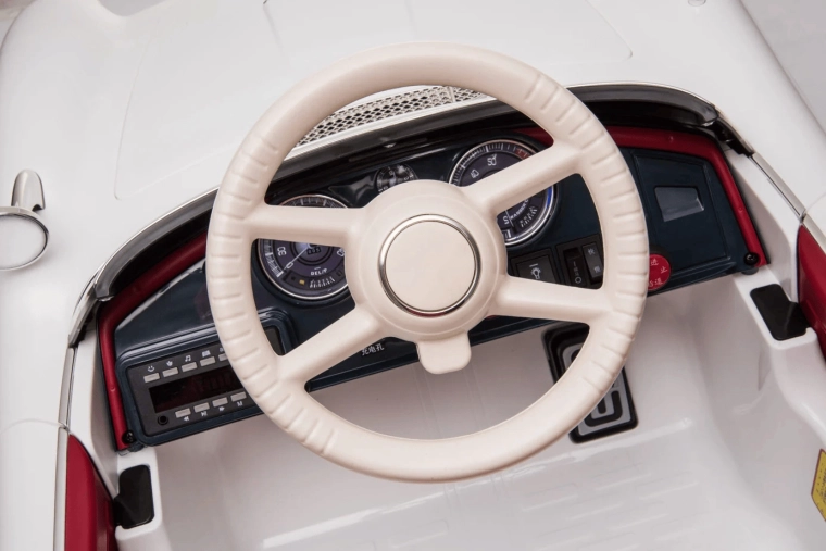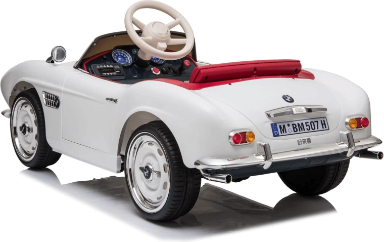 Mașinuța pentru copii BMW licențiată, în culoare albă, aduce o experiență de condus autentică pentru micii șoferi. Părinții vor aprecia elementele de siguranță, inclusiv telecomanda de 2,4 GHz, selecția vitezei joase și înalte și funcția de pornire lentă. Panoul multifuncțional cu MP3, USB și slot TF asigură muzica preferată la fiecare plimbare.