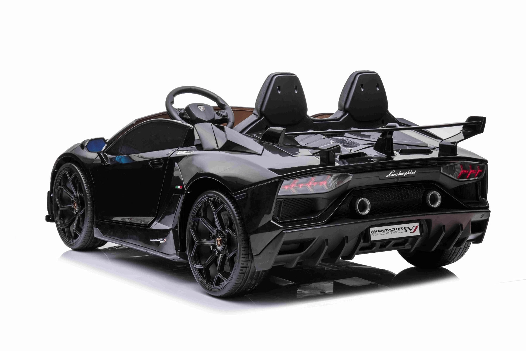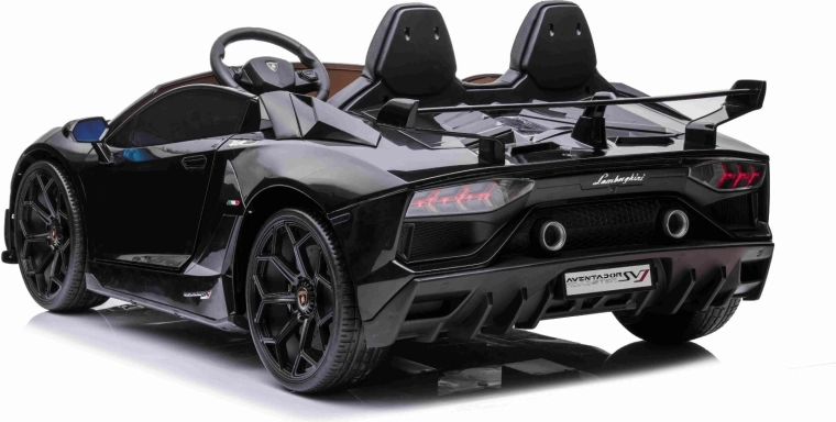 Detalii fidele Aventador SV, deschidere verticală a ușilor, spoiler sport și lumini LED funcționale care oferă o impresie realistă la fiecare plimbare.