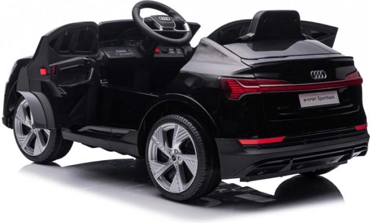 Mașinuța electrică stilată AUDI e-tron Sportback în eleganta culoare neagră impresionează prin aspect realist, pornire lentă în siguranță și telecomandă parentală 2,4 GHz. Oferă mers înainte și înapoi, uși care se deschid, suspensie pe 4 roți și o bogată dotare multimedia (lumini, muzică, MP3/USB/TF).