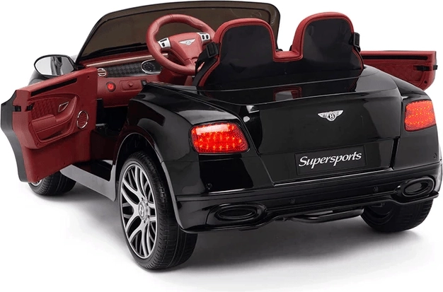 Mașinuță electrică pentru copii, stilată, inspirată de BENTLEY Supersport, oferă design realist, două motoare puternice, telecomandă parentală 2,4 GHz și uși deschizătoare. Datorită roților din cauciuc, suspensiei spate, centurilor de siguranță și panoului multimedia cu USB/MP3, copiii se bucură de o plimbare confortabilă și sigură, atât acasă, cât și afară.