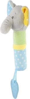 Îmbogățiți momentele de joacă ale copilului dumneavoastră cu această jucărie încântătoare! Elefantul de pluș cu sunet oferă stimulare sonoră, care atrage și distrează. Inelul de dentiție al jucăriei ajută la dezvoltarea abilităților senzoriale și asigură ușurare la erupția dinților. Materialul extrem de moale și delicat este sigur pentru cei mai mici dintre copii.