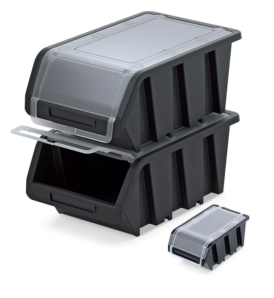 Datorită designului stivuibil și posibilității de montare pe perete, valorificați eficient fiecare centimetru de spațiu. Amestecul polimeric durabil asigură o durată de viață îndelungată și fiabilitate chiar și la utilizare frecventă în mediile solicitante ale atelierelor și depozitelor.