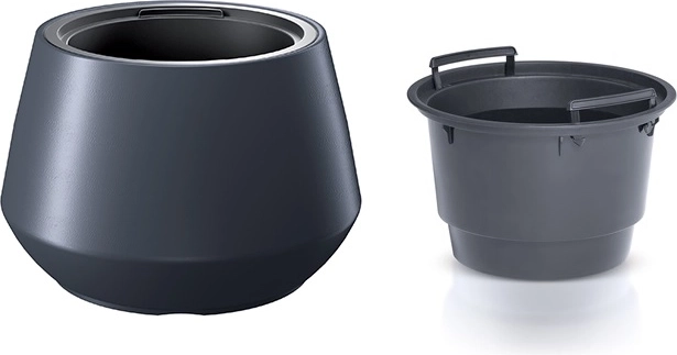 Ghiveci elegant cu inserție detașabilă, cu diametrul de 43,6 cm, în culoare antracit, care combină design modern, plastic rezistent și întreținere ușoară. Potrivit pentru interior și exterior, rezistă la îngheț și radiații UV și, datorită volumului de 34 l, oferă plantelor suficient spațiu.