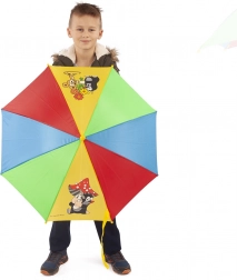 Fără grabă înaintea aversei – umbrela pentru copii cu motivul KRTEK este practică, ușoară și sigură pentru purtare zilnică. Panourile colorate cu ilustrații vesele atrag privirea, iar mânerul galben curbat se potrivește perfect mâinilor mici.