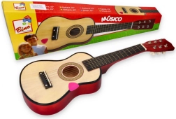 Această frumoasă chitară acustică pentru copii Bino 23" este alegerea perfectă pentru micii muzicieni începători. Este fabricată din lemn de calitate, asigurând atât ușurința cât și durabilitatea instrumentului. Chitara are șase corzi care pot fi ușor acordate și schimbate după nevoie, prelungindu-i durata de viață și asigurând un sunet excelent la joacă.