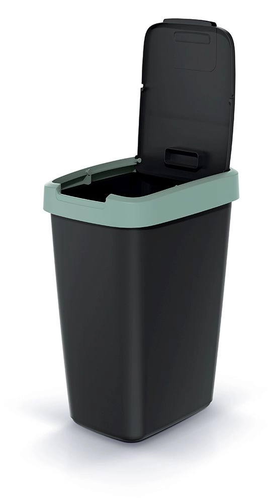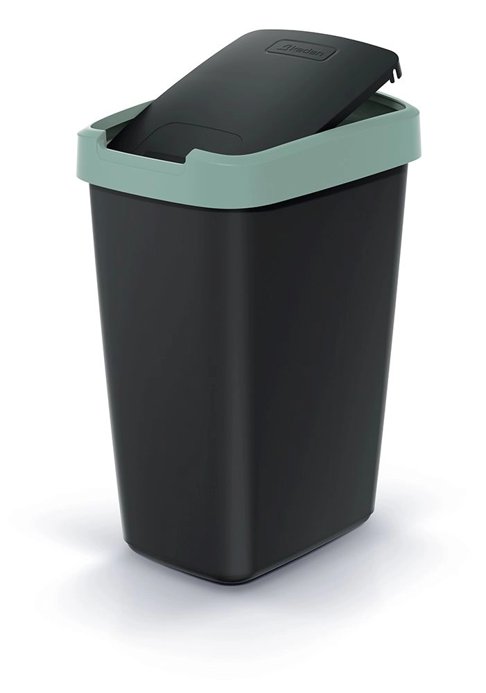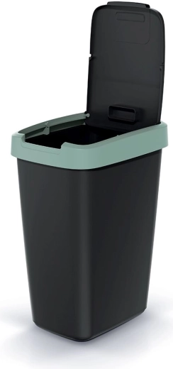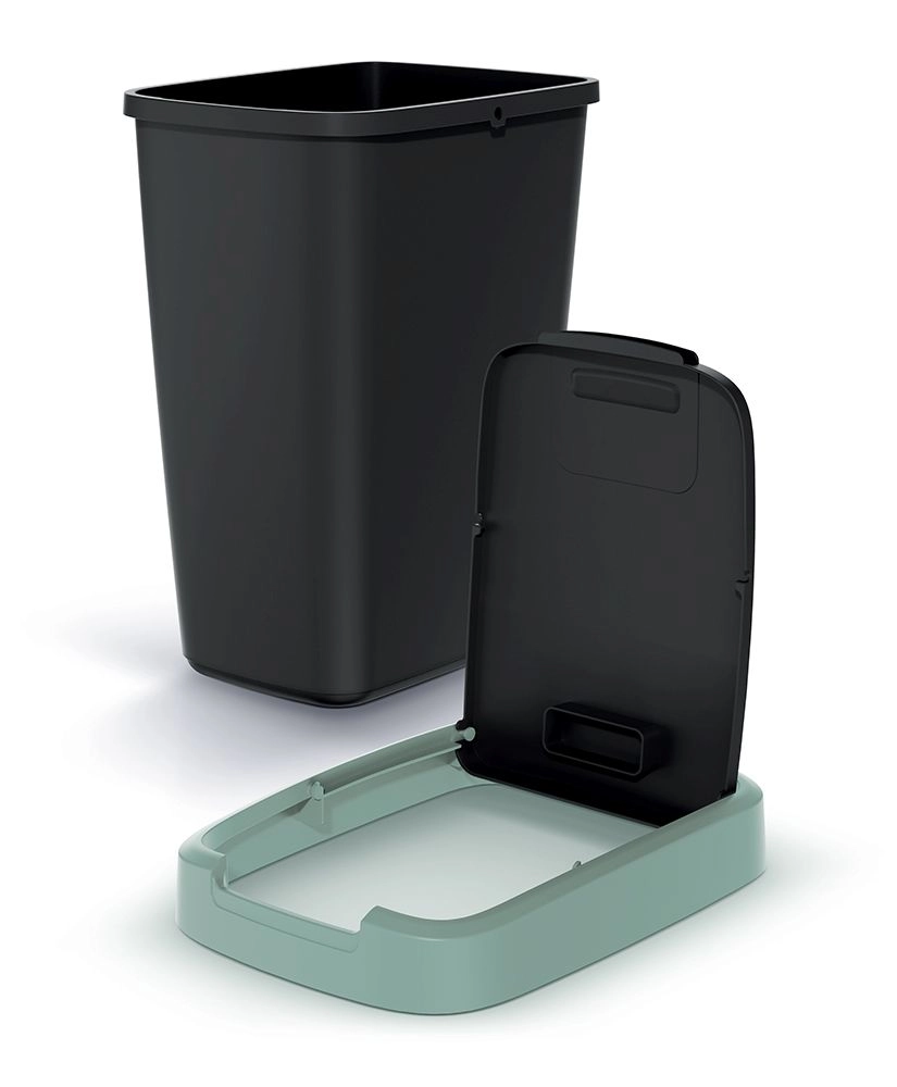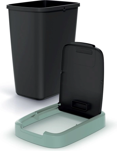 Plasticul rezistent cu finisaj mat se curăță ușor, iar combinația elegantă negru–mentă se potrivește în interioare moderne. Datorită formei dreptunghiulare, ușor conice, coșul economisește spațiu și rămâne stabil chiar și în locuri înguste.