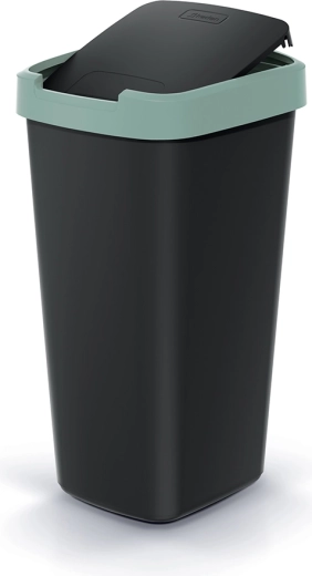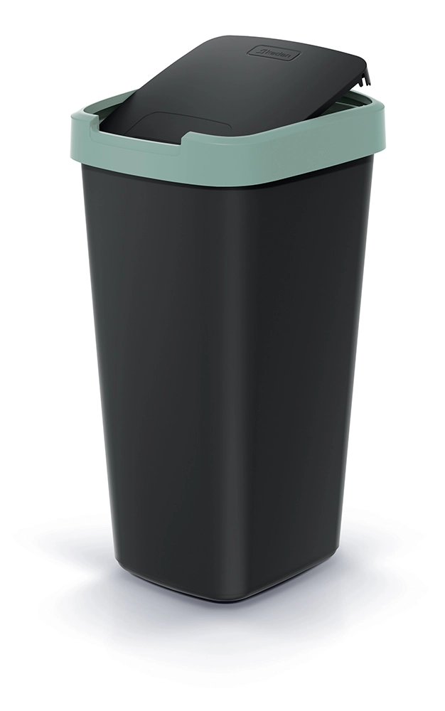 Construcția practică permite deschiderea coșului în două moduri – ridicând întregul capac sau pur și simplu basculându-l. În plus, capacul detașabil fixează săculețul, astfel încât nu alunecă, iar zona din jur rămâne curată. Combinația modernă de culori facilitează colectarea selectivă clară.