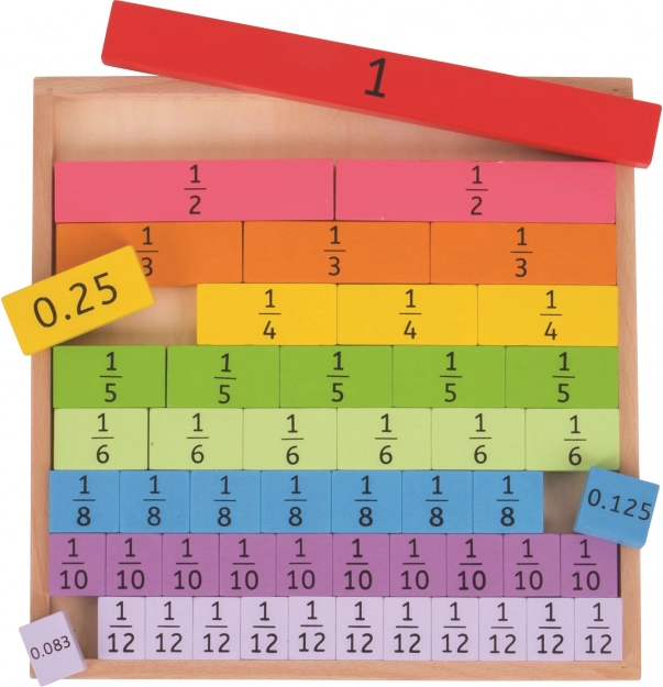 Un ajutor educațional distractiv pentru micii matematicieni, care ajută copiii să înțeleagă fracțiile și relațiile dintre ele. Datorită pieselor colorate, cei mici pot asimila cu ușurință conceptele matematice de bază.