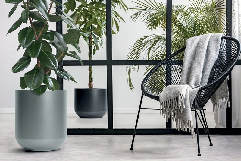 Plasticul solid rezistă intemperiilor și oferă suport stabil rădăcinilor. Ideal pentru terase, balcoane și camere de zi.
