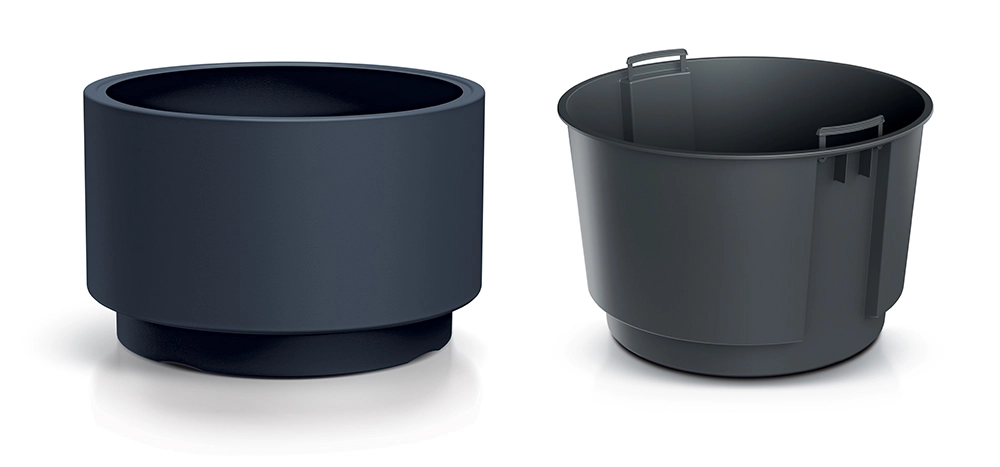 Elegantul ghiveci HEOS cu inserție detașabilă, cu diametrul de 39,5 cm, este ideal pentru interior și exterior. Oferă plastic rezistent, design minimalist, întreținere ușoară și greutate redusă pentru transport comod.