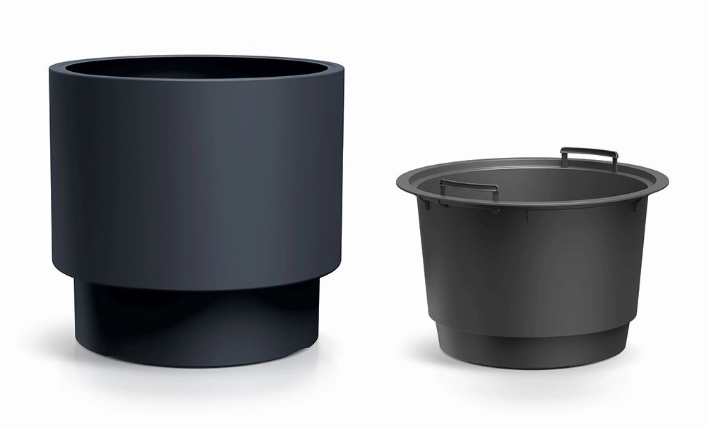 Inserția internă cu mânere integrate facilitează replantarea, curățarea și schimbările sezoniere ale plantărilor. În același timp economisește cantitatea de substrat utilizată, fiind o soluție practică și economică pentru orice cultivator.