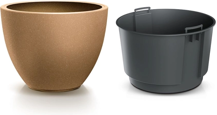 Oferiți plantelor dvs. un cadru stilat. Ghiveciul rotund cu textură fină și aspect de lemn se potrivește perfect în interioare moderne sau naturale și pe terase. Datorită inserției inteligente economisiți substrat și simplificați replantarea, în timp ce materialul robust asigură o durată lungă de viață.
