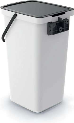Coș de gunoi practic și elegant, cu volum de 25 l, pentru locuință și birou. Dispune de funcție de blocare a capacului în poziție deschisă, cadru interior detașabil pentru fixarea sacului și este fabricat din plastic rezistent, ușor de curățat. Datorită posibilității de agățare pe perete sau pe uși, economisește spațiu și se potrivește perfect oricărui interior.