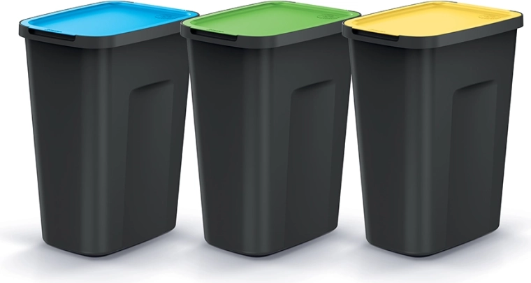 - Sortare eficientă: trei coșuri separate de câte 35 l