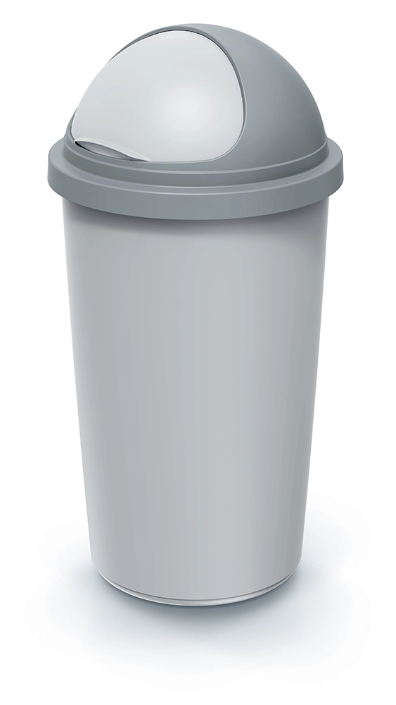 Coș de gunoi practic, cu volum de 60 l, în elegantul gri cenușiu, cu capac gri deschis, ideal pentru locuințe, birouri și spații mai mici. Oferă plastic rezistent, curățare ușoară și dimensiuni economice pentru utilizarea eficientă a spațiului.