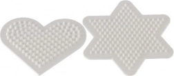 Set de două plăcuțe pentru mărgele termoadezive HAMA MIDI în formă de stea și inimă, ideal pentru dezvoltarea creativității copiilor. Plasticul rezistent asigură stabilitate la așezarea mărgelelor, iar pinii preciși ajută la crearea unor modele frumoase. Un instrument grozav pentru motricitatea fină, răbdare și recunoașterea formelor și culorilor.