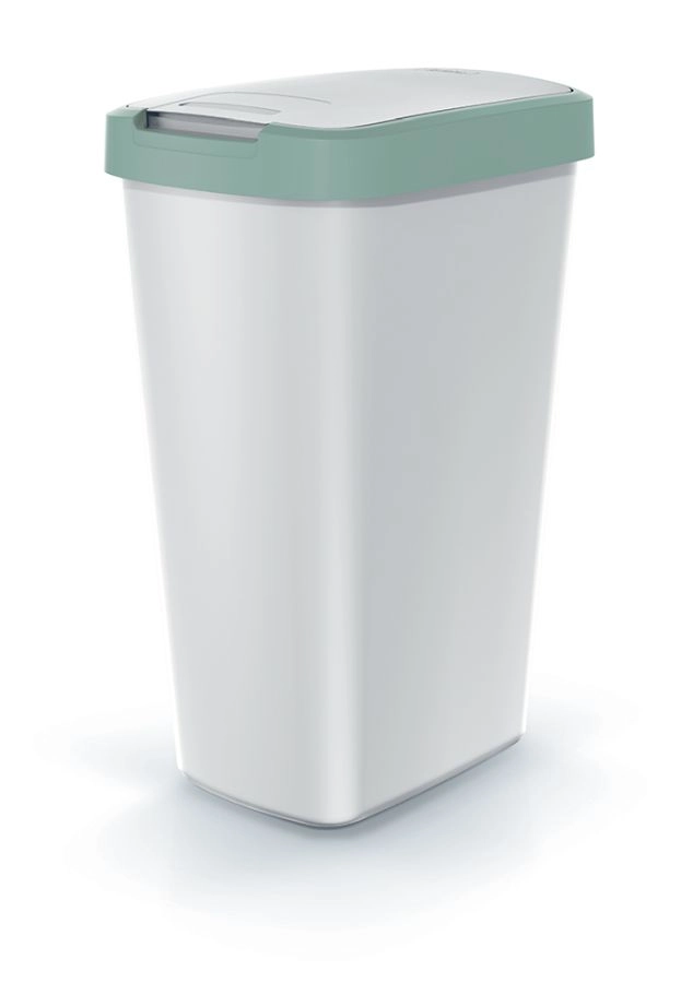 Coș de gunoi practic și econom de spațiu, cu volum de 45 l, pentru locuințe și birouri. Datorită formei înguste încape și în spații mai mici, iar clapeta se deschide în două moduri pentru acces comod. Rama estetică ține ferm sacul, iar corpul cenușiu cu capac verde deschis facilitează sortarea deșeurilor. Plasticul rezistent asigură curățare ușoară și durată de viață îndelungată.