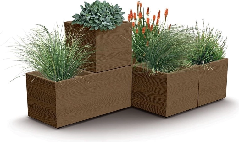 Gama modulară Madera Case permite stivuirea sigură a mai multor ghivece unul peste altul. Creați cu ușurință o grădină verticală de efect.