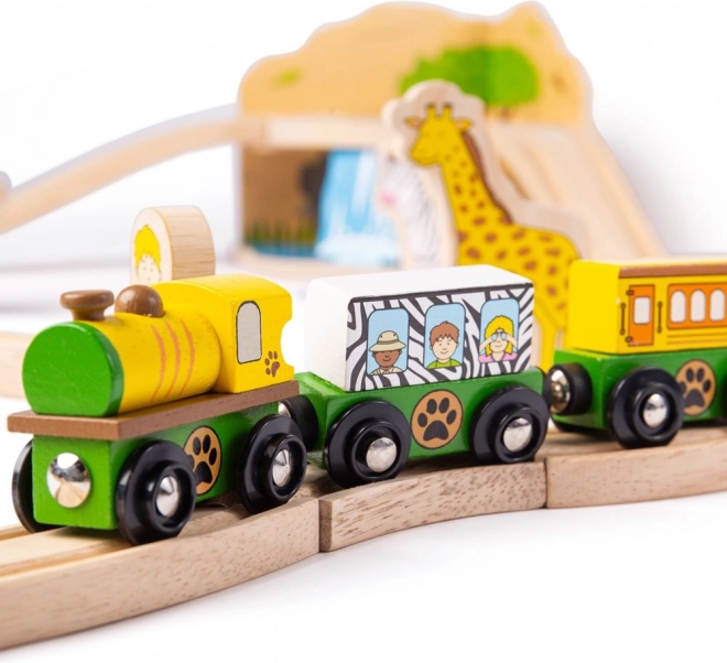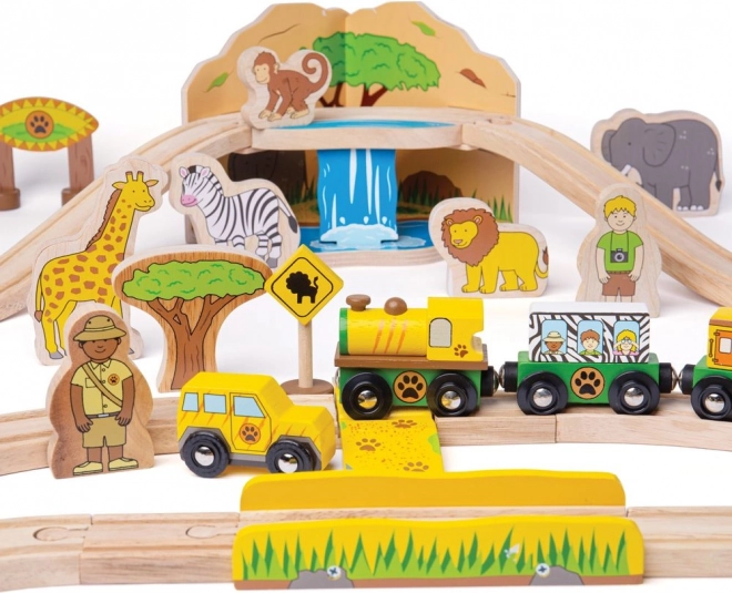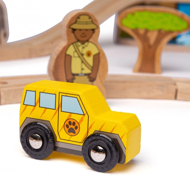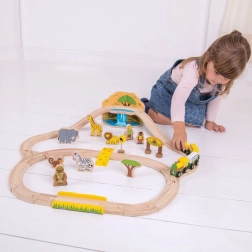 Descoperă lumea safari cu o cale ferată din lemn colorată și robustă, care îi va încânta pe copiii de la 3 ani în sus. Setul include animale precum elefant, zebră și maimuță, copăcei, indicatoare și un pod peste care trece o locomotivă galbenă cu două vagoane. Datorită cuplelor magnetice, jocul este intuitiv și ușor de extins.