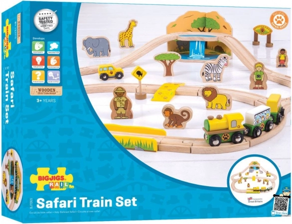 Pornește într-o aventură în sălbăticie cu această cale ferată din lemn Safari de la Bigjigs Rail. Setul de 38 de piese oferă șine din lemn de calitate, locomotivă cu două vagoane, animale sălbatice și accesorii safari, care susțin creativitatea, motricitatea fină și coordonarea mână–ochi. Cuplele magnetice asigură conectare ușoară și compatibilitate cu alte modele.