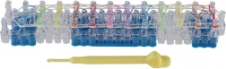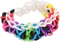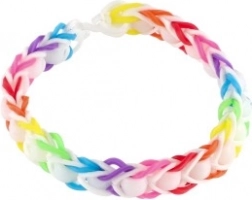 - aprox. 700 de elastice din silicon în culori diverse, război de țesut cu trei rânduri, cârlig, unealtă pentru împletire, 20 de închizători, mărgele colorate, ghid ilustrat