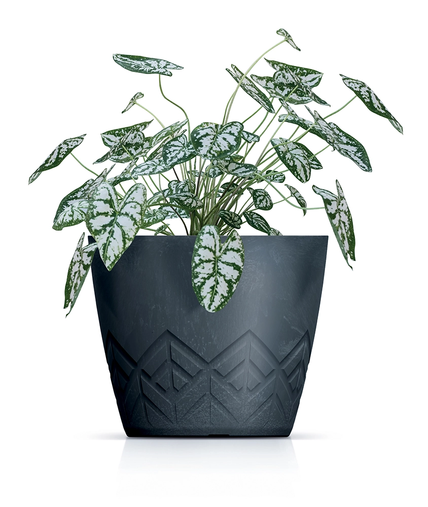 Suprafața mată, cu efect de marmorat și model geometric pronunțat în partea inferioară, oferă plantelor un cadru elegant și conferă personalitate oricărui spațiu.