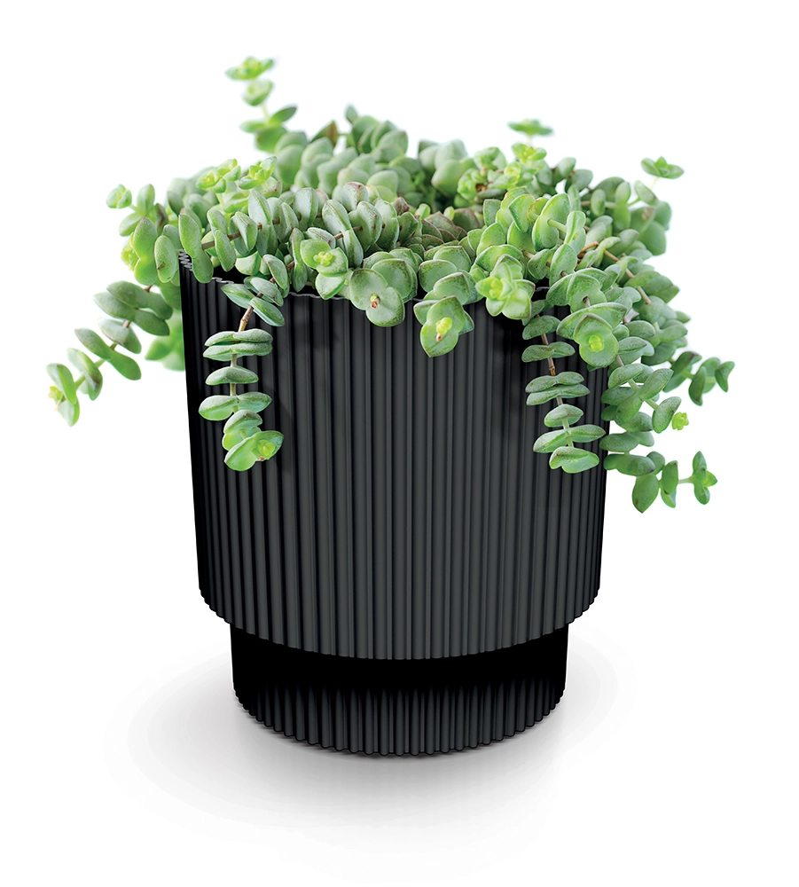 Datorită construcției din plastic ușor, dar robust, rezistă la solicitări mecanice, soare și umiditate, păstrându-și aspectul pentru mult timp. Striațiile verticale adaugă un caracter decorativ și în același timp facilitează prinderea la transport. Soluția integrată de drenaj sprijină circulația aerului către rădăcini, ceea ce contribuie la vitalitatea plantelor.