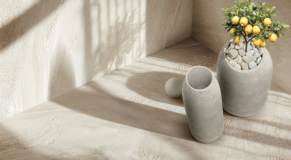Finisajul mat cu efect de lut modelat manual are un aspect natural și se potrivește ușor atât cu interioarele minimaliste, cât și cu cele inspirate de natură, precum și cu spațiile exterioare.