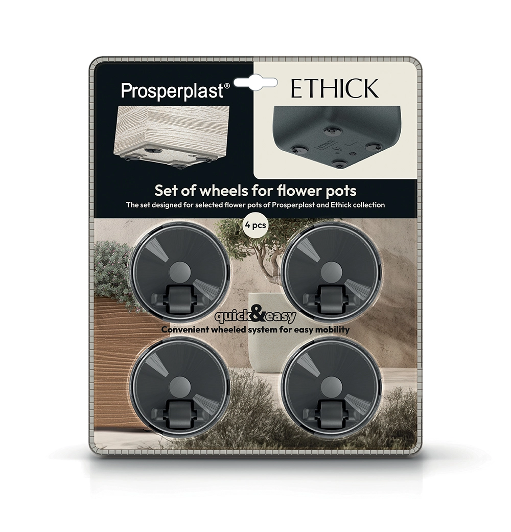 Sistemul de autoirigare integrat menține umiditatea ideală a substratului, astfel încât plantele prosperă chiar și cu udări mai rare. Picioarele cu imitație de lemn asigură stabilitate, o ventilare mai bună a bazei și un aspect elegant atât pe terasă, cât și în living.