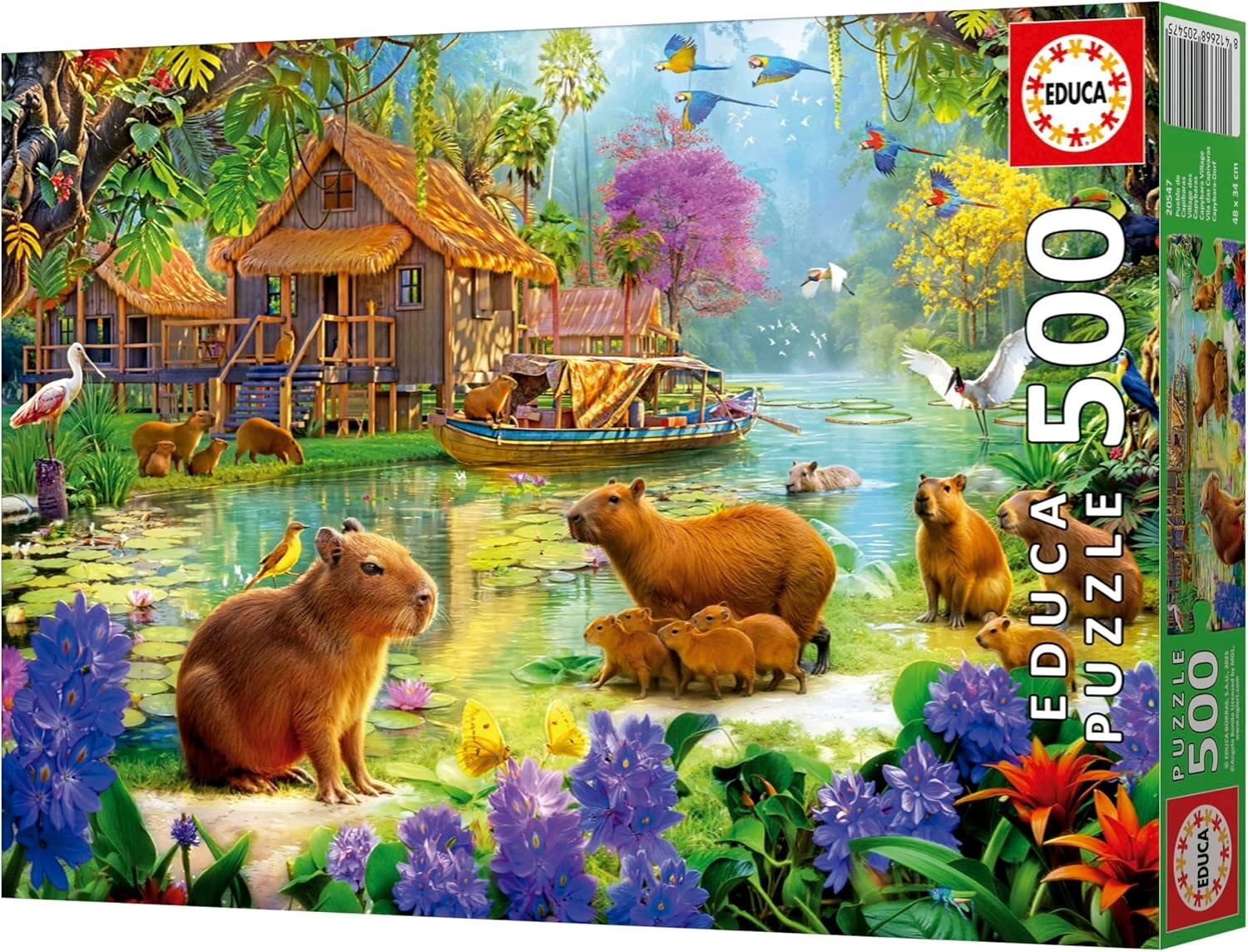 Descoperiți farmecul asamblării cu puzzle-ul EDUCA – „Satul capybară”. Datorită celor 500 de piese, este ideal pentru o după-amiază relaxantă și pentru antrenarea concentrării și a motricității fine. După asamblare, veți obține o imagine impresionantă cu dimensiunile de aprox. 48 × 34 cm, pe care o puteți fixa ușor cu adezivul inclus și o puteți expune.